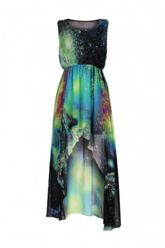 Green Space Print Asymmetrical Maxi Dress